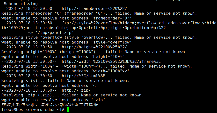 您好,根据您的截图信息,看到是网络原因造成的无法连接宝塔节点造成。麻烦您根据以下思路一步一步排查:1、检查当前服务器的网络是否能通外网,可以使用ping命令来检测,如果ping不通,网络可能是存在故障,需要找服务器运营商解决网络: