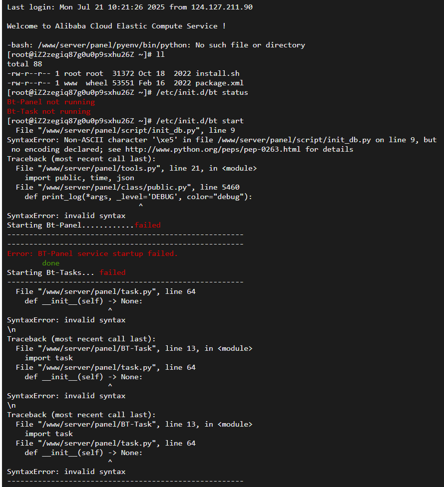 阿里云ecs补丁修复后,导致浏览器无法入进宝塔面板,尝试修复问题和重装宝塔,均未成功,求助~~~