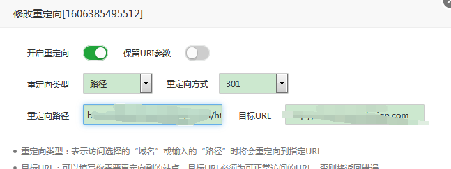谢花郎 发表于 2020-11-26 19:36 您好,使用路径重定向只能添加路径或者需要重定向单个文件,不能加域名的。 ...