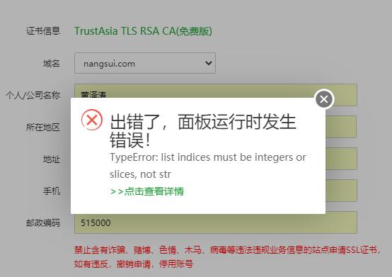 谢花郎 发表于 2022-4-5 10:49 您好,麻烦您将完整错误截图出来,这点错误看不到具体是什么原因。或者您那边修复一下面板然后重新申请 ...