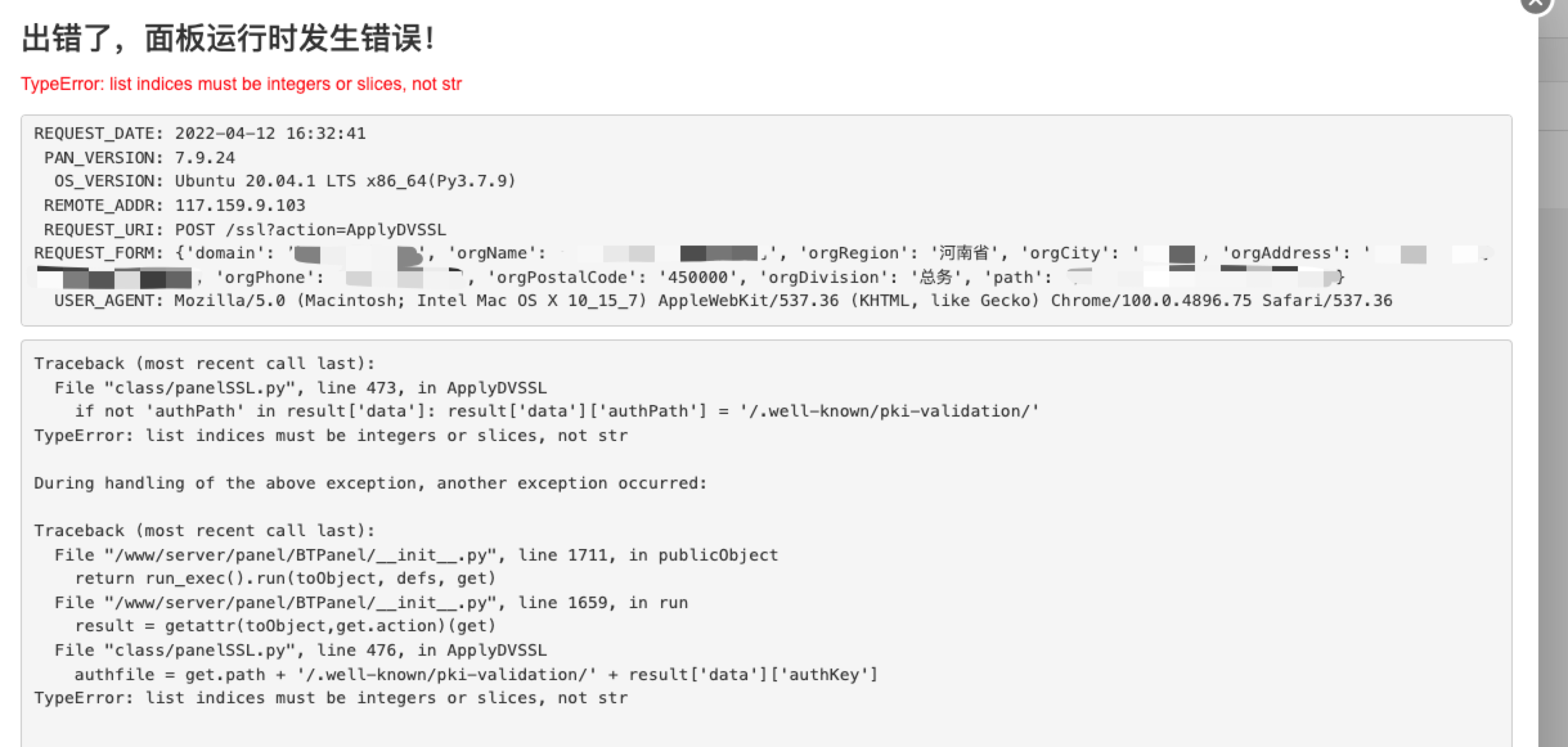 yzzy 发表于 2022-4-23 17:45 出错了,面板运行时发生错误!TypeError: list indices must be integers or slices, not str REQUEST_DATE ...