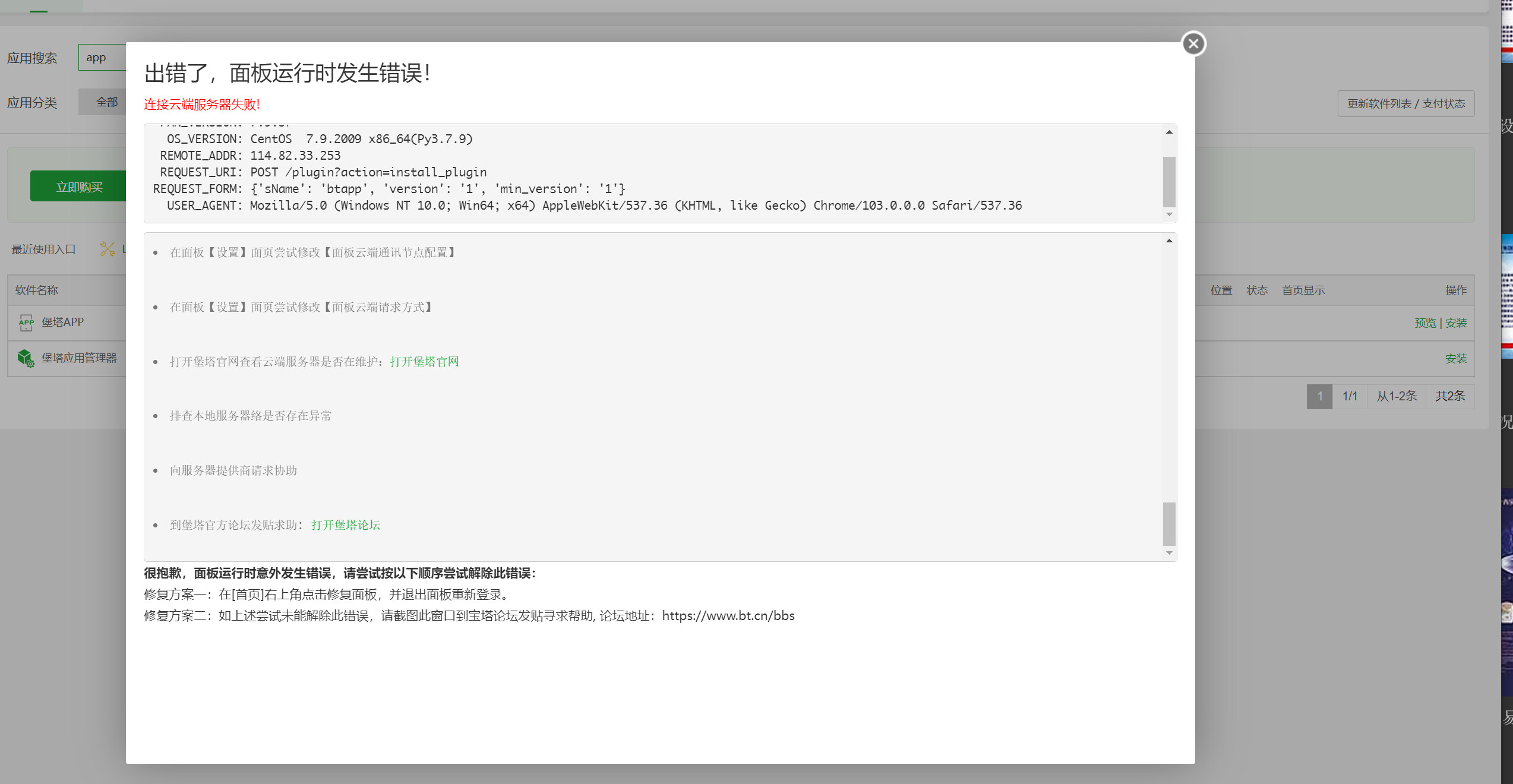 堡塔运维向樛木 发表于 2022-7-24 12:19 您好!截图看一下错误详情!